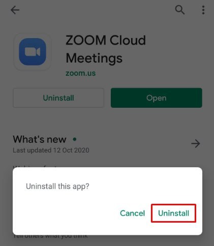 - 이제 Zoom이 장치에서 제거되어야합니다.
