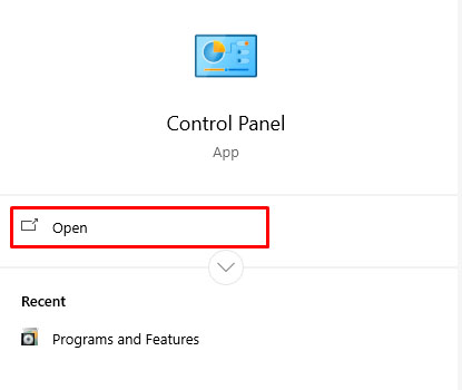 - 제어판을 클릭하여 제어판 앱을 엽니 다.