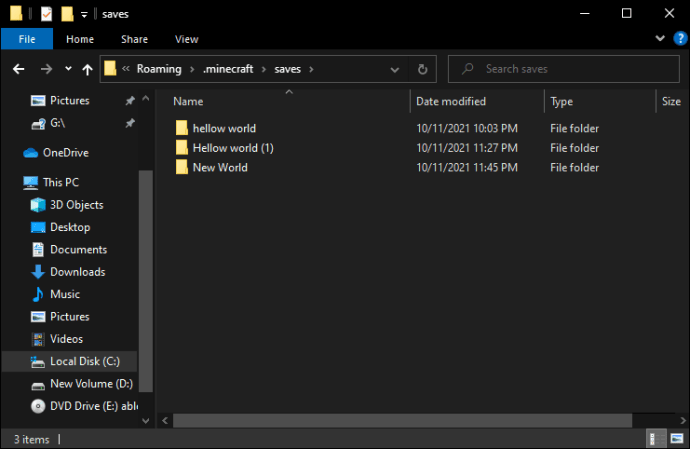 - 여기에서 저장된 모든 세계를 찾을 수 있습니다. 월드 파일을 복사하여 다른 위치에 붙여넣기만 하면 됩니다.