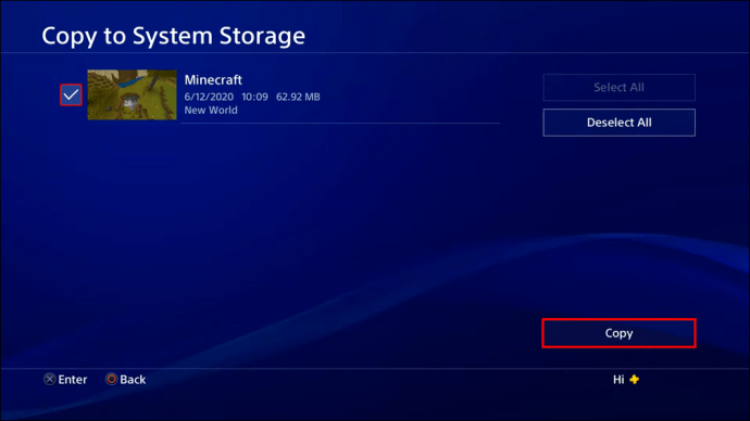 - "Copy World" 버튼이 보일 것입니다. 그것을 클릭하면 백업이 생성됩니다.