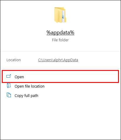 - 컴퓨터에서 " %Appdata%" 폴더로 이동합니다.
