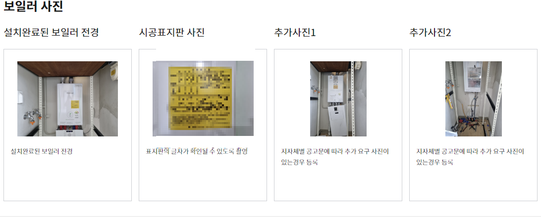 보일러 설치 전 후 사진(전체 사진, 명판확대 사진)