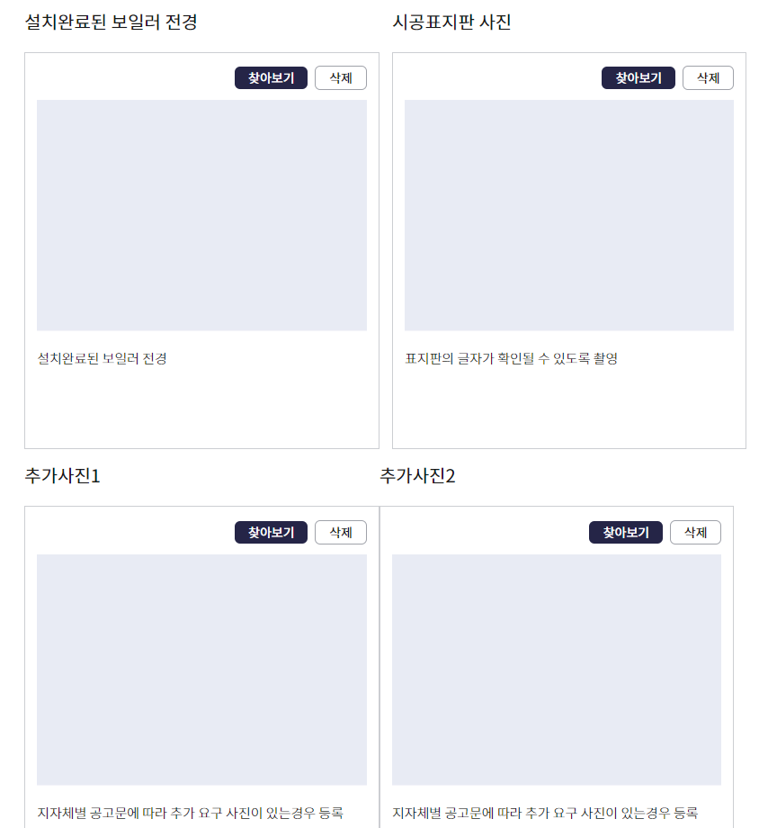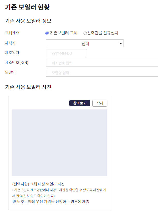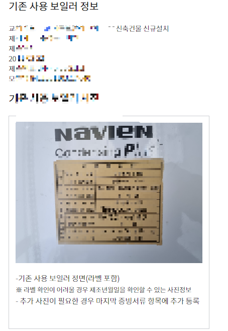 5. 기존 보일러 명판 확인 하셔서 기존 보일러 정보 입력 후 사진 업로드 해주세요