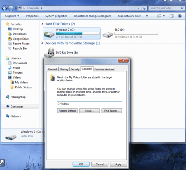 위에서 설명한 대로 SSD가 올바르게 설치되면 Windows에 새 드라이브가 나타납니다. 각 폴더의 속성에 접근하여 새 SSD로 옮길 수 있습니다.